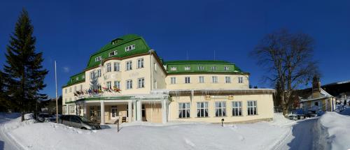 Hotel Palace Club befindet zirka. 200 m von Zentren der Stadt Spindelmühle. Danke sein vorteilhafte Lage anbietet herrlich Aussicht in ganz Stadt auch umliegend Natur. Hotel verfügt 32 geräumig Zimmern und 2 luxuriös geschmackvoll. Alle Zimmer sind ausgestattet Dusche, Toilette, dem Telefon, minibarem und TV/ SAT.Im Hotel sind Ihnen dafür Gaststätte - genutzte wie Konferenzsaal,sommerlich Terrasse, Lobby Bar mit Café, Sauna, whirpool, billiard und Massage.