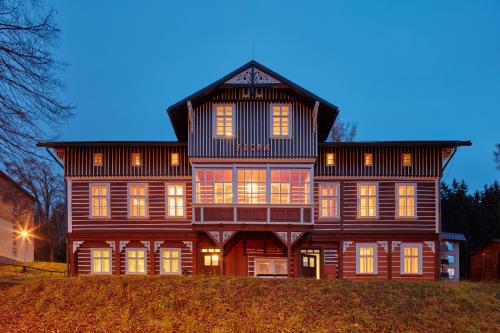 Neue renovierte Pension mit einer Gesamtkapazität von 35 Betten im Zentrum Janské Lázně befindet sich – 200 m von einem groβen areal „Černá hora“. In der Pension ist Restaurant mit Bar für die Gäste. Doppelzimmer, Dreibettzimmer oder Familienzimmer für 5-6 Personen, jedes mit Sozialeinrichtung, TV-SAT. Parkplatz beim Haus - konstenlos. Nichtraucherobjekt.